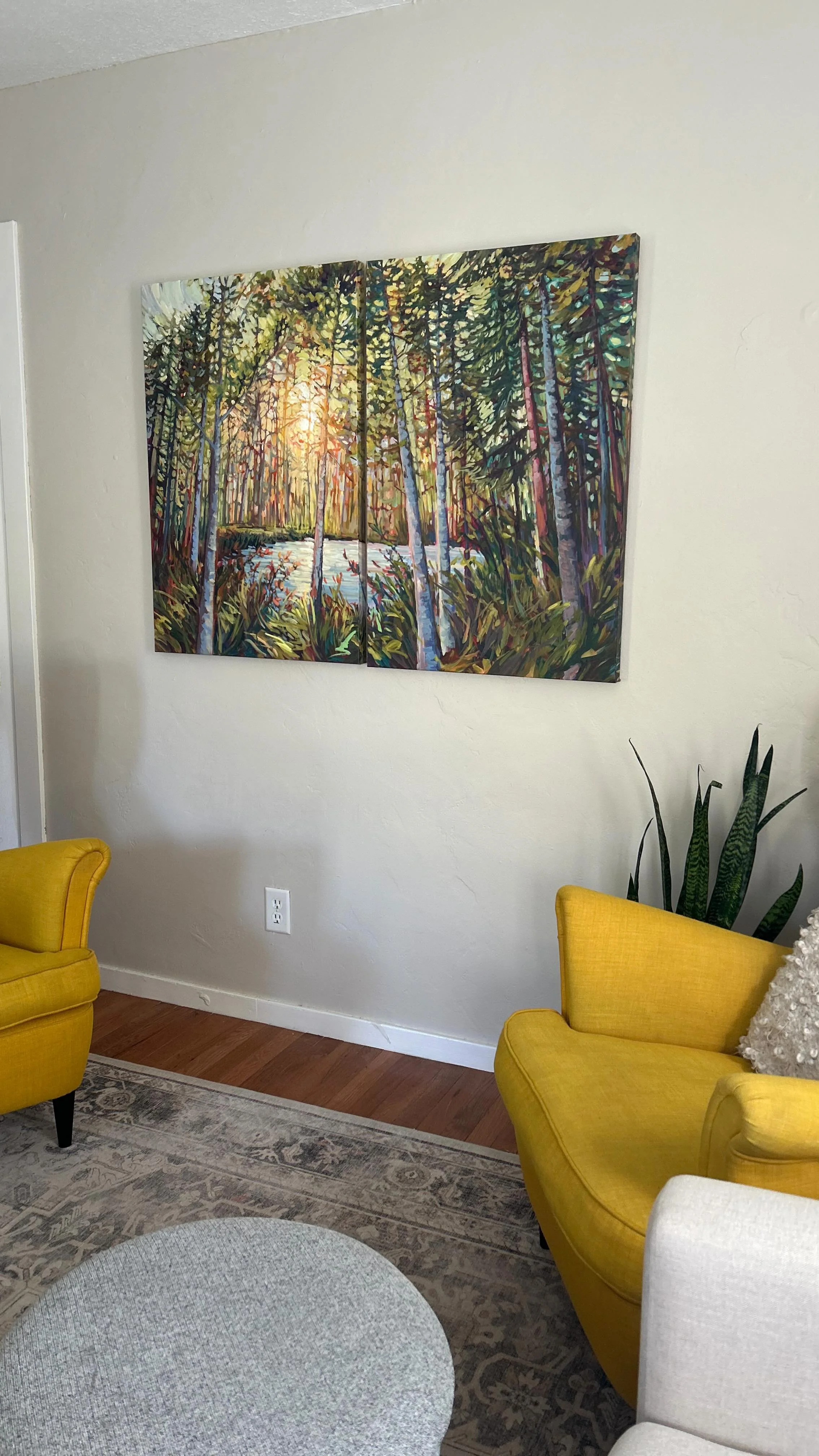 “Adding a piece of artwork by Jenna Paulsen will make your room feel alive! The colors and painterly brushstrokes she uses give movement and capture the sublime moments of nature.”
